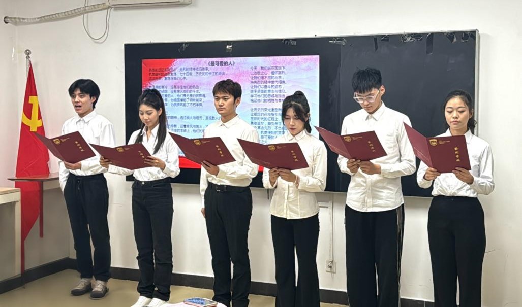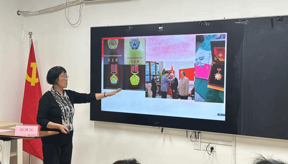 理论社团的同学深情朗诵了《最可爱的人》,致敬那些为抗美援朝战争抛头颅洒热血的烈士们,现场同学们深受感染,为烈士们的奉献精神和革命精神感动不已。随后郑闽江教授与在场同学们深情讲述了五位我校志愿军老同志在抗美援朝战争中的英勇事迹,为我们再现了抗美援朝那段波澜壮阔的历史。并向同学们分享了自己通过专访、查阅大量史料创作《英雄静默——西安外国语大学健在的5名抗美援朝老兵故事》视频的故事。她谈到,希望通过这样一场别开生面的座谈会,能够激发大家的爱国意识和创作灵感,鼓励大家作为艺术类专业学生,不仅要将抗美援朝精神铭记在心,更应将家国情怀贯穿进作品创作中,传承、发展下去。