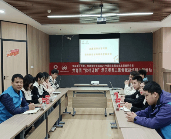 2024 年 12 月 7 日下午,艺路阳光志愿者队赴西安市莲湖区梨园社区,参加共青团“伙伴计划”示范项目志愿者赋能培训暨2024年国际志愿者日座谈会。共青团莲湖区委副书记朱钰冰、梨园社区党支部书记刘思雨、西安市协力社会工作服务中心主任李帅帅、西安航空学院经济管理学院电子商务教研室副主任殷培伟、开云体育官网