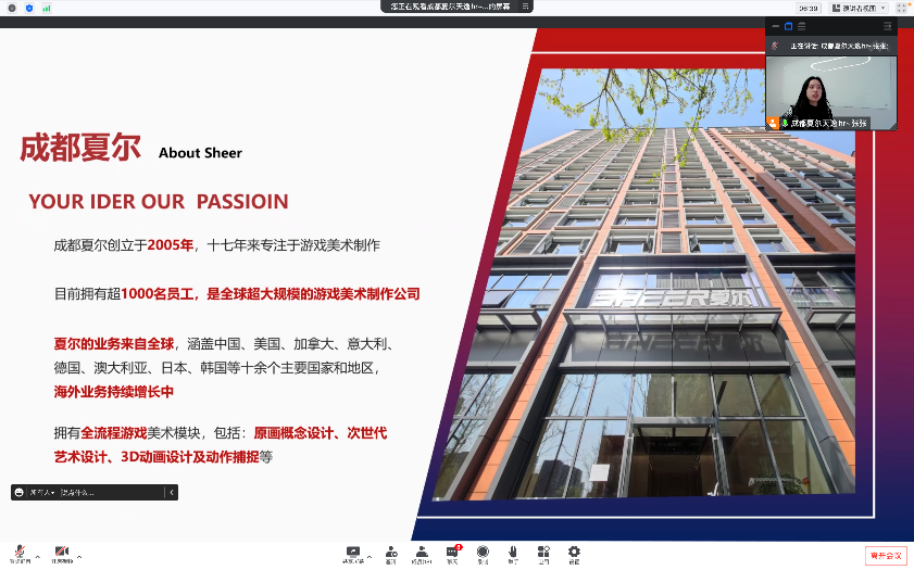 座谈会上,夏尔校招负责人张哲对公司进行了详细介绍,希望有机会创新校企合作模式,在专业共建、人才联合培养、助力学生实习实践等方面探索更多合作。李金明详细介绍了动画专业建设、人才培养等基本情况。双方就产学融合、实习设岗等方面进行了深入沟通。梅林竹向对方介绍了学院整体情况,希望双方能借由本次宣讲会机会,加深彼此间的了解,将市场需要与人才培养相链接。希望在疫情缓和后,用人单位能来校招聘,学院也将择时主动带领师生前往成都实地考察,期待有更深入长期的院企合作,为毕业生就业实习搭建更好的平台。