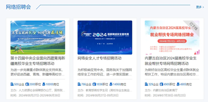 国家大学生就业服务平台上汇总了大量由政府部门或求职招聘平台主办的线上、线下专场招聘会,不仅有面向某一类/几类专业人才的,还有面向一定地域范围内高校毕业生。