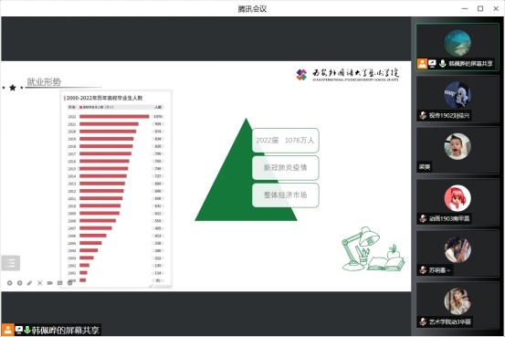 就就业形式与对策、就业材料撰写与设计,开展了就业及考研实践指导会。会议由2019级辅导员韩佩晔老师主持,讲解了就业和考研形势的分析,参与年级为开云体育
