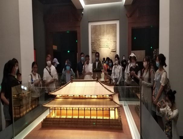 5月19日实践周第四天,我们来到了大明宫遗址博物馆和秦砖汉瓦博物馆。坐落于大明宫国家遗址公园含元殿遗址与宣政殿遗址中间的大明宫遗址博物馆总占地面积达10570平方米,博物馆展陈分为“千宫之宫”即大明宫的整体布局、“如日之升”即大明宫的营建历史、“万国来朝”即大明宫的使用功能、“守望辉煌”即遗址保护四个部分。整体展厅风格遵从唐代建筑形制特点,序厅作为进入展厅的第一空间,采用传统中轴对称手法,雄浑大气,尽显大明宫气质。