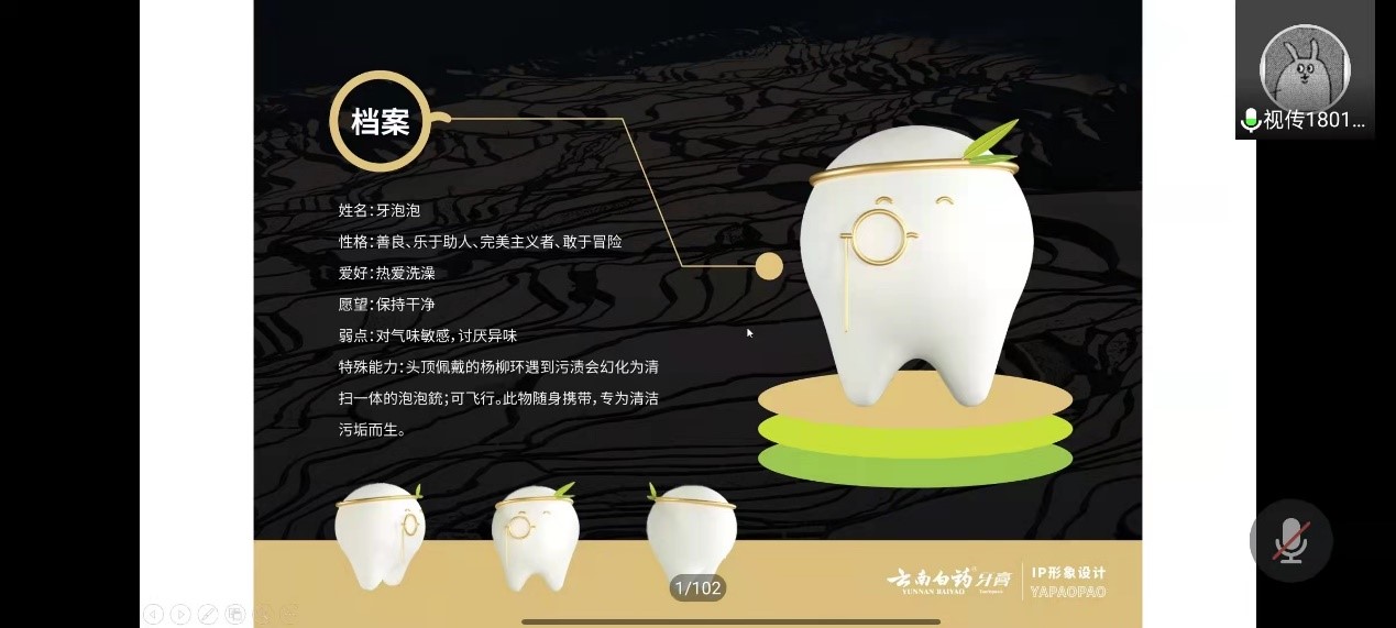 2018级视传专业徐若茜分享全国大学生广告艺术大赛获奖作品云南白药IP设计心得和经验以及参加比赛注意事项,并对作品的设计过程做了详细的讲解。