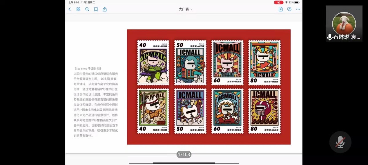 2018级视传专业石琳琳和袁佳敏分享全国大学生广告艺术大赛获奖作品爱喜猫设计心得和经验以及参加比赛注意事项,讲述设计灵感和设计方法。讲述两个人创作作品的分工和两个人在创作中的合作。