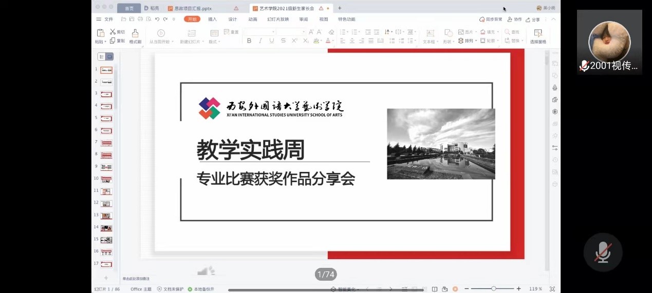 六位同学分享完获奖作品及经验后,由许黎雯老师介绍了视觉传达设计专业的各类国赛和省级赛事,弓淼老师、李金明老师对参赛进行补充和详细的讲解了比赛规则和注意事项,并由李金明老师介绍接下来分享获奖作品的同学。