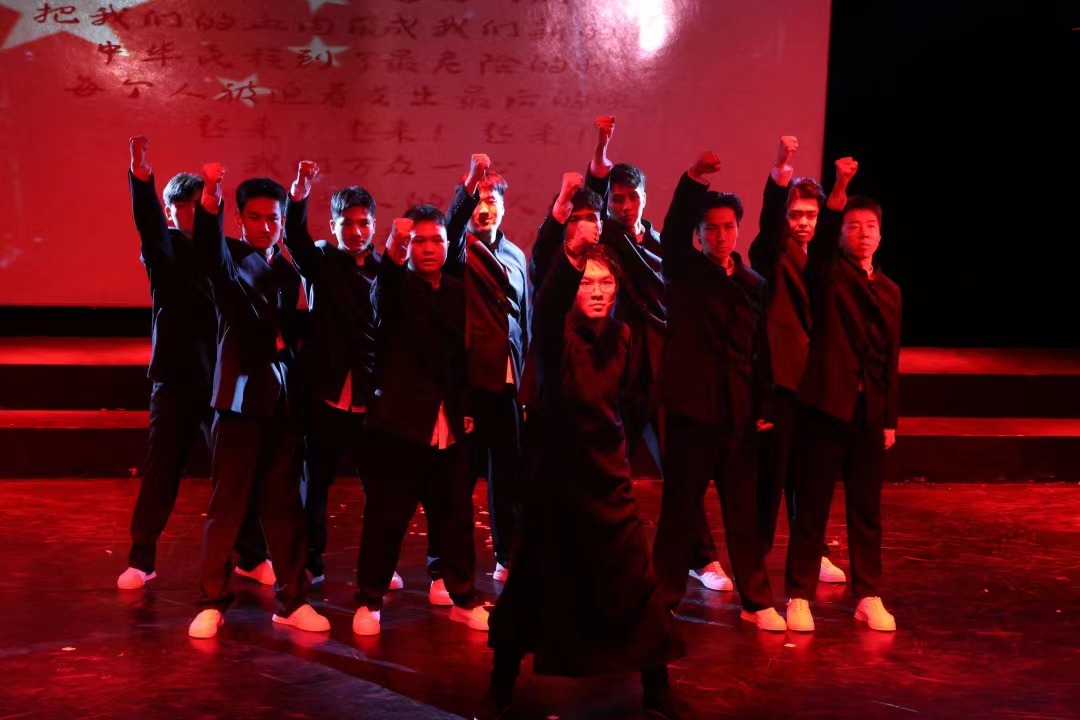 2020级1班多幕剧《狂飙》,由田沁鑫编剧,陈乃嘉老师指导完成。剧目以中国现代戏剧奠基人田汉先生的艺术生活为题材,作品在写实与写意之间,烘托出一个生动、真实的田汉。该剧创排的用意在于夯实内外部行动基础,训练学生完成完整的人物体验与体现过程,准确塑造田汉、安俄、林维中、易漱瑜等一批历史上真实人物,提升表演技能。其次,通过学习该剧目浪漫、唯美的舞台写意风格,训练学生对“空的空间”的高阶表达能力,进一步提升综合的剧场创造力。