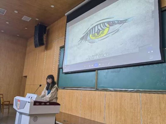 会上,吕珂分别从她本人的四年专业课自学能力、审美能力培养、作品集准备、专业实习经历、大学的学习规划五个方面讲述。