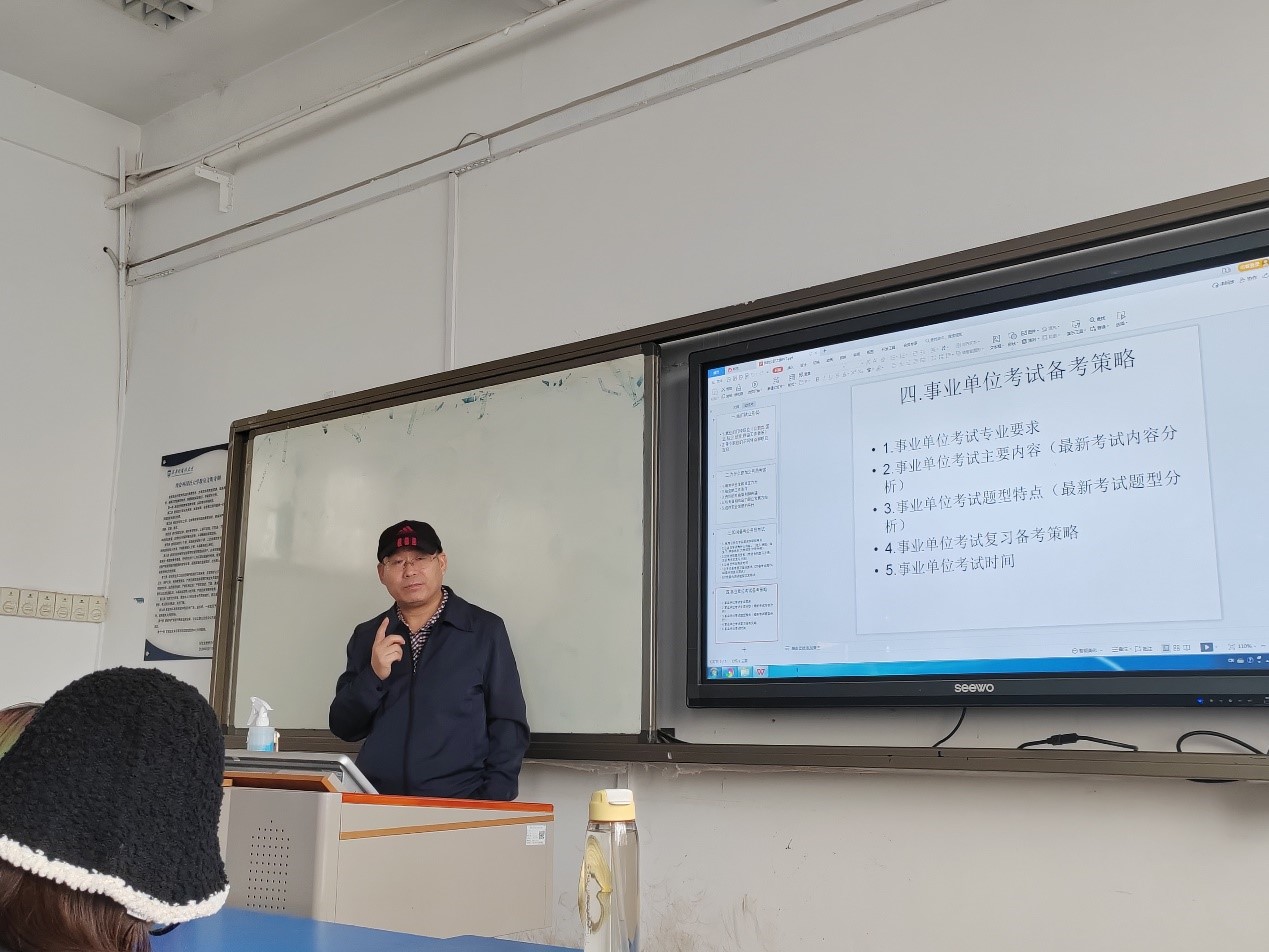 “公职类考试备考讲座”在JE501举行,本次讲座由戏剧影视文学教研室张勤宝老师主讲。