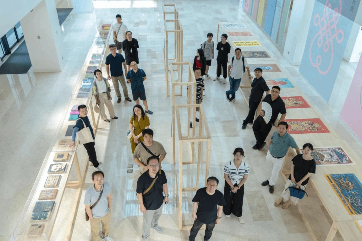 西安欧亚学院专任教师、国家艺术基金项目学员——王晓彤和高原老师,带领大家参观西安欧亚学院设计博物馆等展览场所,对展览作品的相关背景、设计理念和艺术价值进行了详细讲解,随后又带领大家参观了版画工作坊,并以亲身实践经验为大家讲解机器的操作技巧和作品成型的过程。