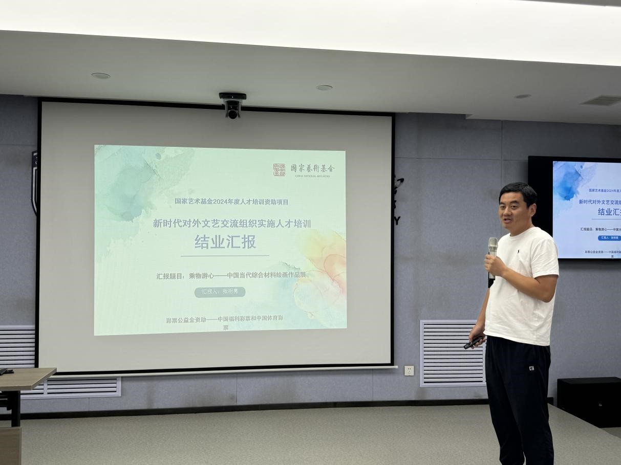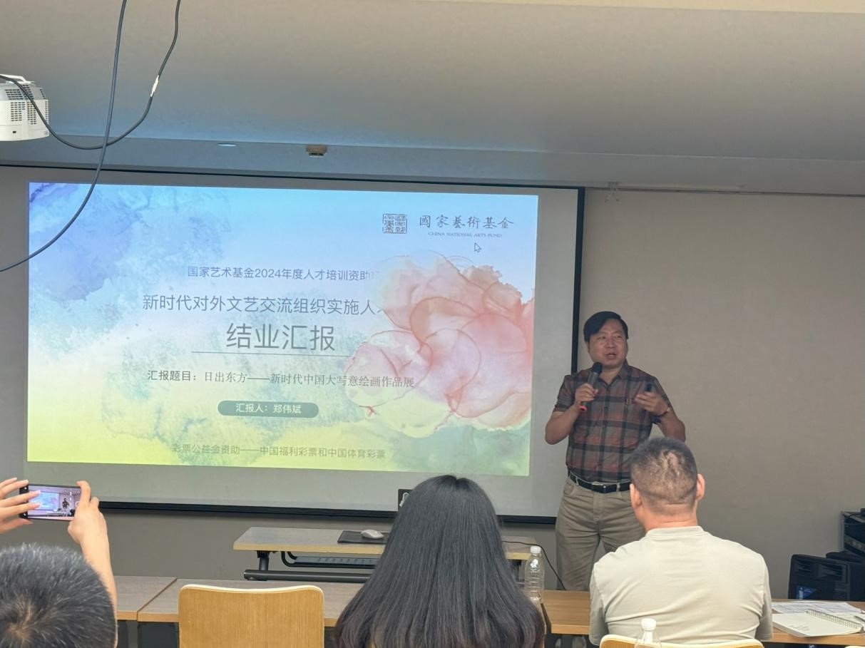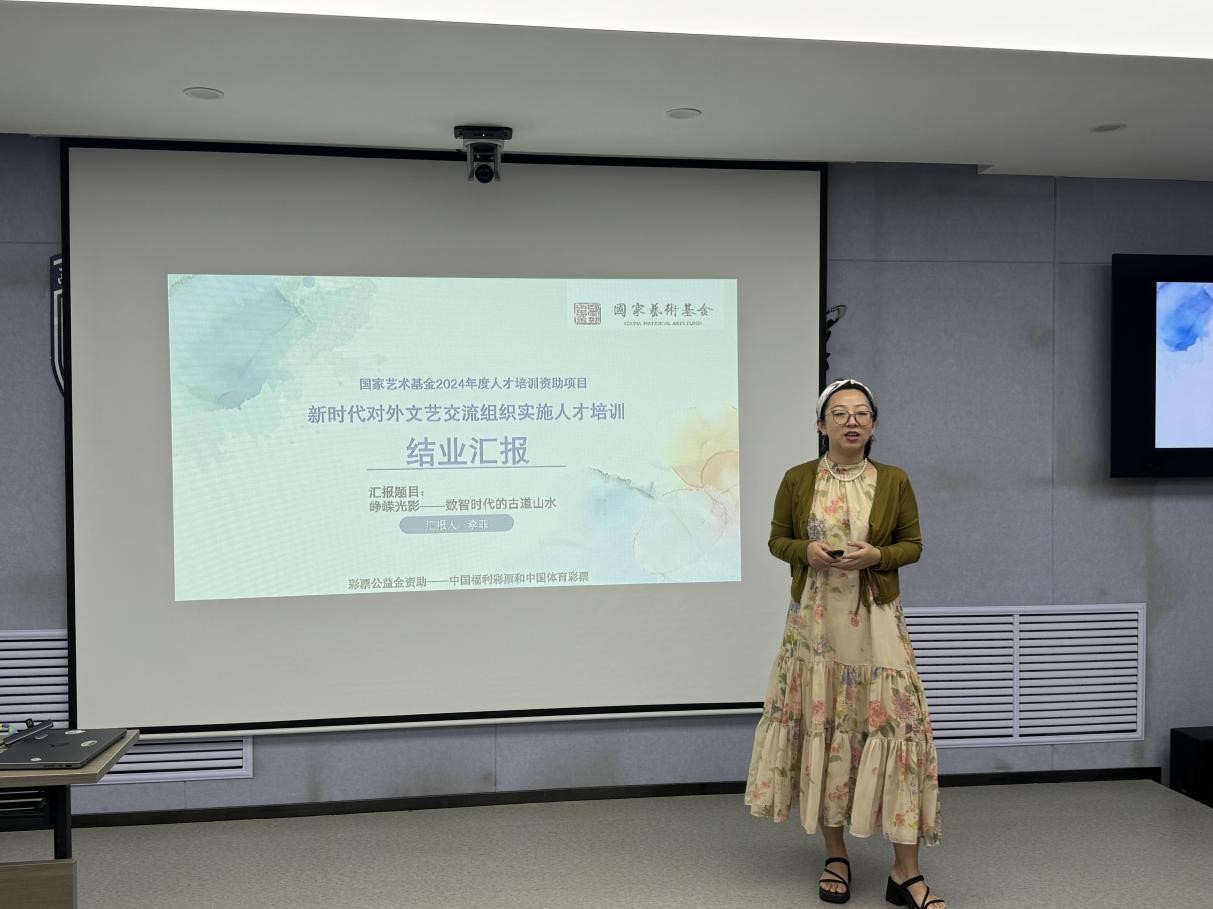 2024年“新时代对外文艺交流组织实施人才培训”项目课程顺利结课,在结业后的成果总结大会上,所有学员都对自己的学习成果进行了汇报总结。项目负责人李杰院长对学员成果进行点评,荣宝斋杂志主编李向阳老师参与了本次会议并担任评审,从专业角度对约30位学员们的汇报成果进行了指导和评价。
