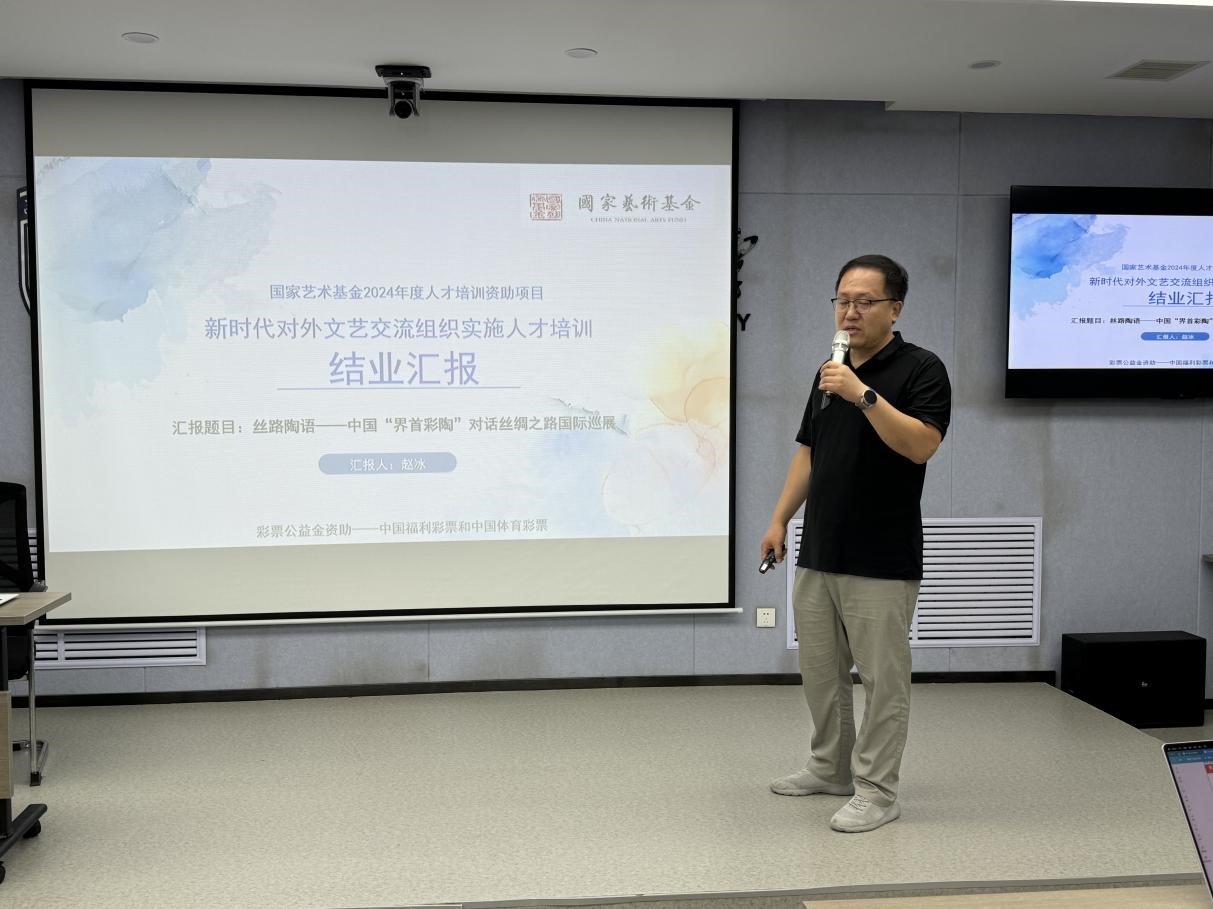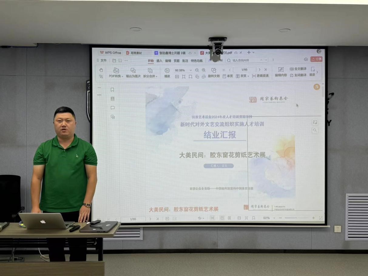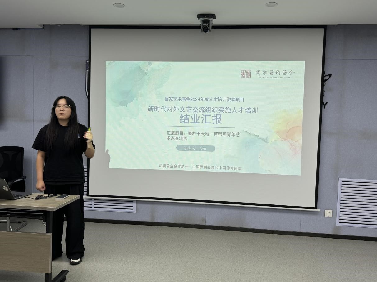 2024年“新时代对外文艺交流组织实施人才培训”项目课程顺利结课,在结业后的成果总结大会上,所有学员都对自己的学习成果进行了汇报总结。项目负责人李杰院长对学员成果进行点评,荣宝斋杂志主编李向阳老师参与了本次会议并担任评审,从专业角度对约30位学员们的汇报成果进行了指导和评价。